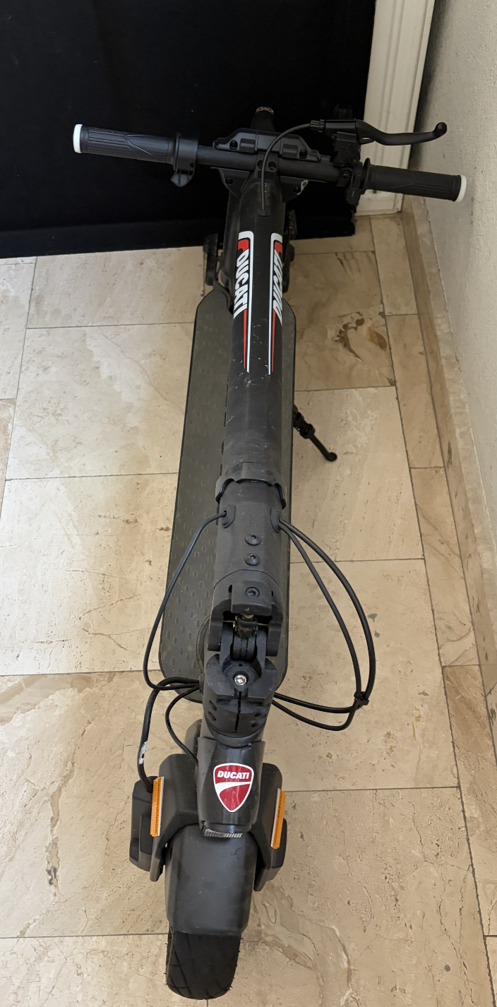 DUCATI PRO-II PLUS este echipata cu un motor fara perii de 350 W si o baterie de 7,8 Ah, care va permite sa parcurgeti pana la 25 km cu stabilitate si confort deplin, multumita si suspensiei spate si anvelopelor tubeless de 10”.